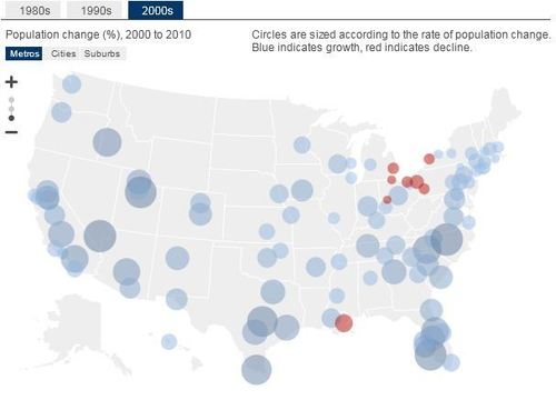 The twists and turns of metropolitan population growth are reviewed in William Frey’s examination of recently released Census Bureau data separating the bubble and bust years of the past decade.