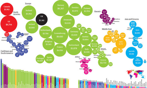 Discussion questions: What regional patterns are there in the per capita healthcare spending? What connection would you expect between per capita health care spending and the quantity of doctors? What areas spend the least on healthcare? How come?