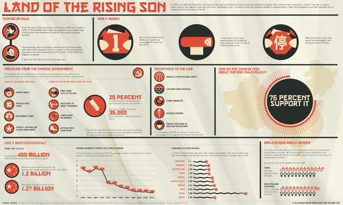 “In 1979, the National Population and Family Planning Commission in China enacted an ambitious program that called for strict population control. Families in various urban districts are urged to have only one child—preferably a son—in order to solve the problems related to overpopulation. What has happened since then and what are its implications for the future of China?” An excellent infographic for understanding population dynamics in the world’s most populous country.