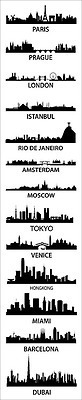 These skylines are not to scale, but are composite skylines to groups together the iconic representations of the particular cities into one.