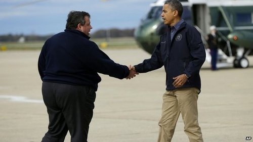 KT: Obama has visited New Jersey to observe the damages sustained from hurricane Sandy. New Jersey got hit harder than most and has been severly flooded and damaged in several regions.