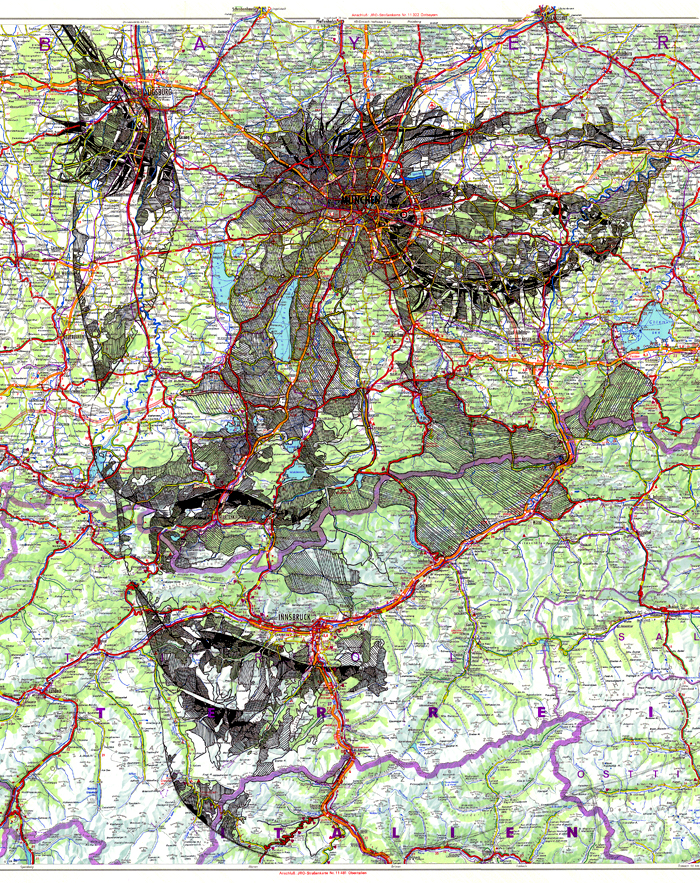 I have a weak spot for art that uses cartography as both the medium and canvas. This links you to the artist’s site, but you may also wish to see this article with a nice gallery of his cartographically inspired art.