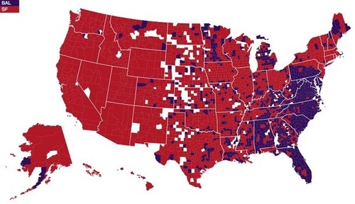Who is rooting for which team in the Super Bowl? How does regional geography play a role in this distribution of the data captured in this map?