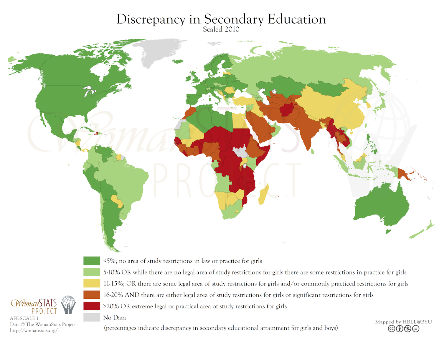 I have linked to the WomanStats Project in the past because their global datasets and maps are perfect for student projects to get them exploring for a potential topic that might be of interest to them. I’m resharing this now because they have recently updated their maps page to include 28 statistics measures to indicate the status of women around the world. The WomanStats Project provides important data and maps regarding issues of gender, access and equity with a spatial perspective.