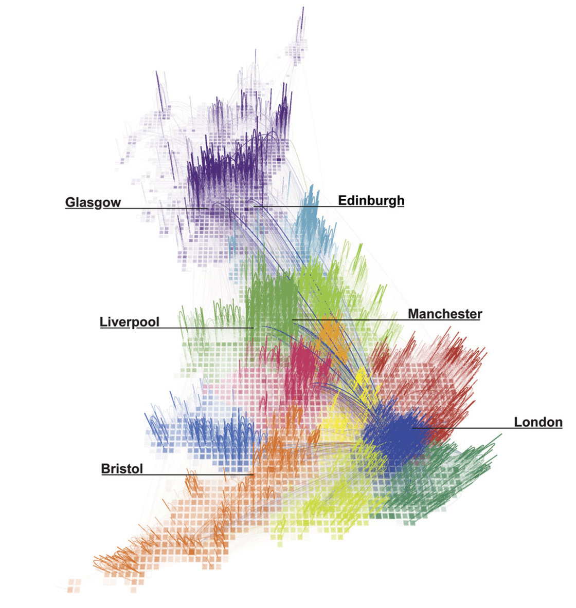 There is a great series of maps in this NPR article that shows that internal political divisions do not always line up with actual regional interactions. The map of the United States shows the what money flows within regions that do not always follow state borders (see Wisconsin, Idaho and Pennsylvania). The map of Great Britain shows the connections based on telephone calls.