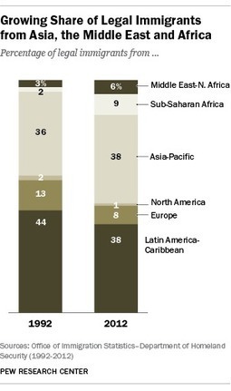 Back in 1992, most legal immigrants came from Latin America and Europe. Nowadays, they tend to come from Asia and Africa.