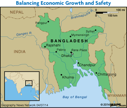 One of the first industries to be impacted by what is today called globalization was the textile industry and the successive waves of globalization continue to alter the geography of the textile industry. This video shows how historical problems in the U.S. textile industry are seen today in countries such as Bangladesh as does this interactive feature. The following paragraph is from a Geography News Network podcast / article that Julie Dixon and I co-authored for Maps101 about the Bangladeshi garment industry: