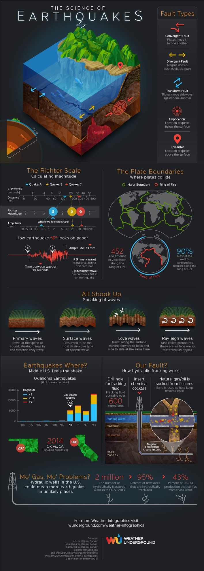 From fault types to the Ring of Fire to hydraulic fracking, the Earthquakes infographic by Weather Underground helps us understand the complexities of what shakes the ground.