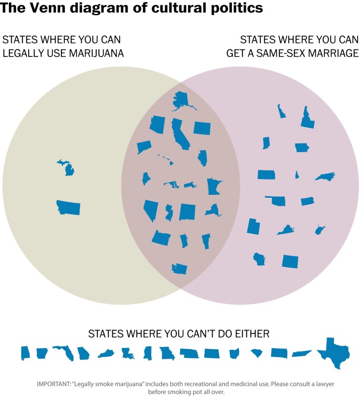 While this doesn’t say everything about the state of cultural politics in the United States, it does lay out some of the more ideologically charged debates in the new political landscape after the midterm elections. What does this Venn diagram say about the state of cultural politics in your state?