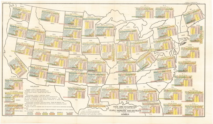 “Americans’ understanding of who counts as ‘white’ has changed dramatically throughout the country’s history and even over the last century alone. This map — which covers a decade of immigration to the US, from 1892 to 1903 — is a dramatic illustration of what it looked like when ‘white’ wasn’t the same thing as European. Mouse over any part of the map to magnify it.”