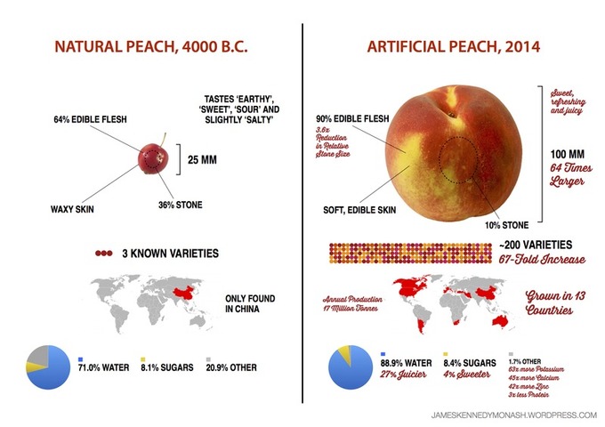 Corn, watermelon, and peaches were unrecognizable 8,000 years ago.
