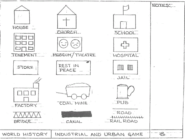 In this game, you simulate the industrial revolution and have your students design a village that, after 20 rounds of the simulation, will grow to a full-fledged city. Various teachers have adapted the rules for this game and here are some variants that are saved as a standard webpage, Microsoft Word file, PDF, Powerpoint and Prezi formats.