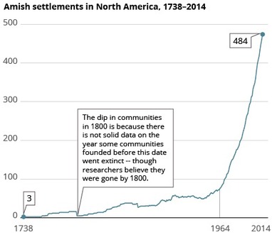 “There’s no denying that the Amish are fascinating to the rest of us (“the English,” in Amish terms). We buy their furniture and jam, and may occasionally spot their buggies when driving on country roads through America’s heartland. Many may not realize, however, that though the Amish make up only a tiny percentage of Americans (less than 0.1 percent), the Amish population has grown enormously since the early 1960s, with much of the increase occurring in the last two decades.”