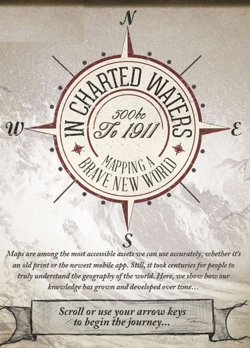 Use our interactive In Charted Waters tool which shows information & visuals on how our knowledge of the world map has evolved.