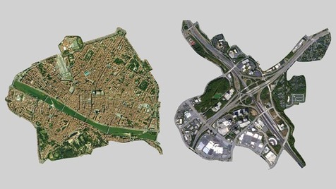 That is is the ENTIRE city of Florence, Italy on the left, while there is area surrounding just one cloverleaf interchange in Atlanta, Georgia on the right. The high speed on the highways is one of the costs of sprawl.