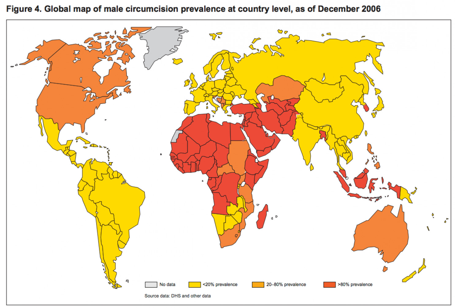 “There’s no question that among the world’s wealthy nations, the U.S. stands out when it comes to circumcision. The WHO estimates that the overall male circumcision rate in the states is somewhere between 76 and 92 percent. Most Western European countries, by contrast, have rates less than 20 percent. But even these numbers mask considerable regional variation within countries.”
