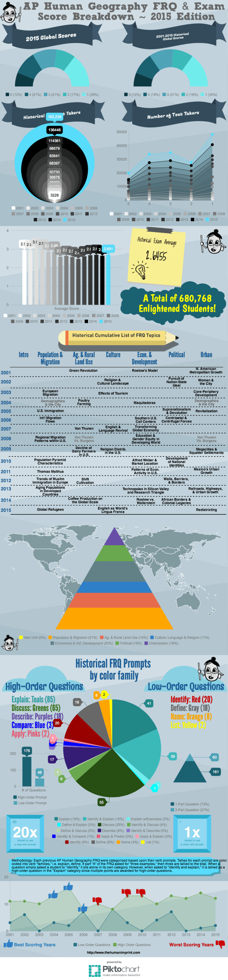 This outstanding infographic from the Human Imprint is an excellent summary of the AP Human Geography exam and gives some valuable insights to prepare students to pass the exam. This is well worth the read for any APHG teacher.