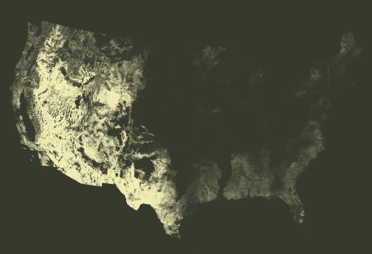 Using data from the USDA, Pecirno has mapped the lower 48 states by picturing just one single subject, and nothing else – no political borders or backgrounds. The project aims to show how richly detailed single-subject maps can give people a new way to understand their landscape, Pecirno says.