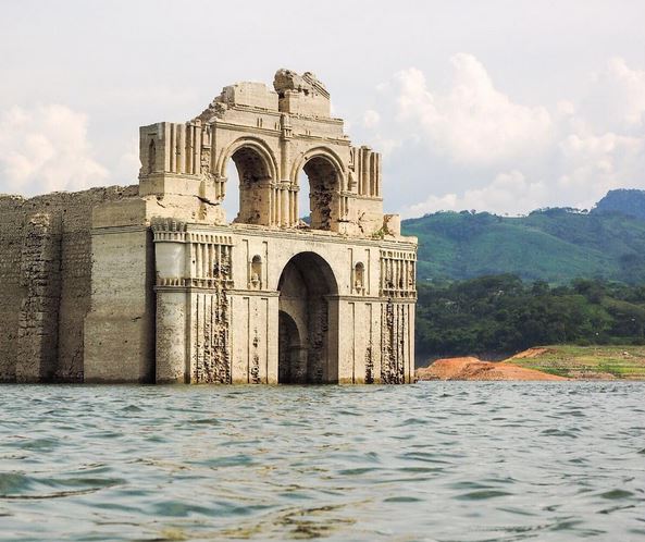 A 16th century church has emerged from the receding waters of the Nezahualcoyotl reservoir in the southern Mexican state of Chiapas. This is the second time water levels have dropped low enough to reveal the church since the reservoir was completed in 1966.