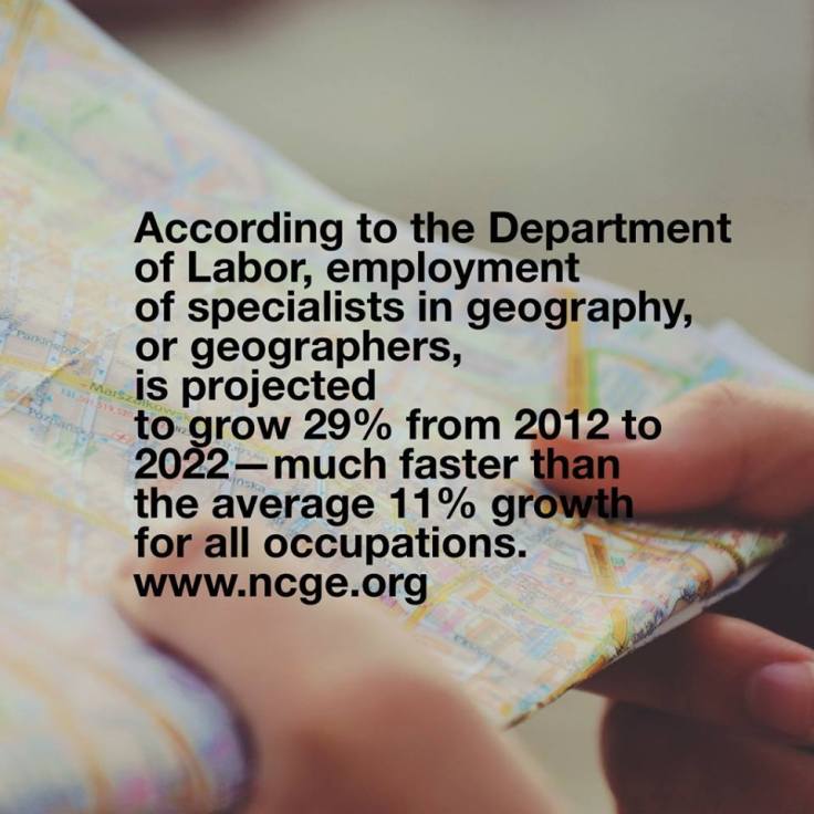 The NCGE promotes geographic education, which we need now more than ever–here are the labor statistics about the future need for geographers supporting the statements in the image above.