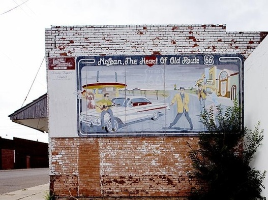 Route 66 holds a special place in the America’s collective soul and taps into a feelings of nostaglia for a bygone era…but we don’t really want to go back to that time (hence the economic decline of these withering small towns). “In 1956, Eisenhower’s Interstate Highway System effectively bypassed Route 66. The straight-lined, speedy interstates often bifurcated cities. They also cut paths far from Route 66’s small, idiosyncratic towns. The rise of modern air travel also diminished the appeal of the winding, open road. Yet it was not only new modes of transportation that faded Route 66; it was also a changing definition of ‘vacation.’ Disneyland and Las Vegas staked their claims to the American travel budget in the mid ’50s. Suddenly, the ‘there’ took precedence over the ‘getting there.'”