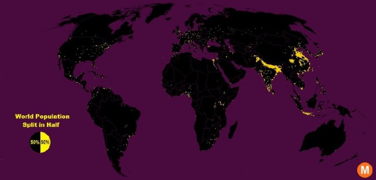 “Data viz extraordinaire Max Galka created this map using NASA’s gridded population data, which counts the global population within each nine-square-mile patch of Earth, instead of within each each district, state, or country border. Out of the 28 million total cells, the ones with a population over 8,000 are colored in yellow.”