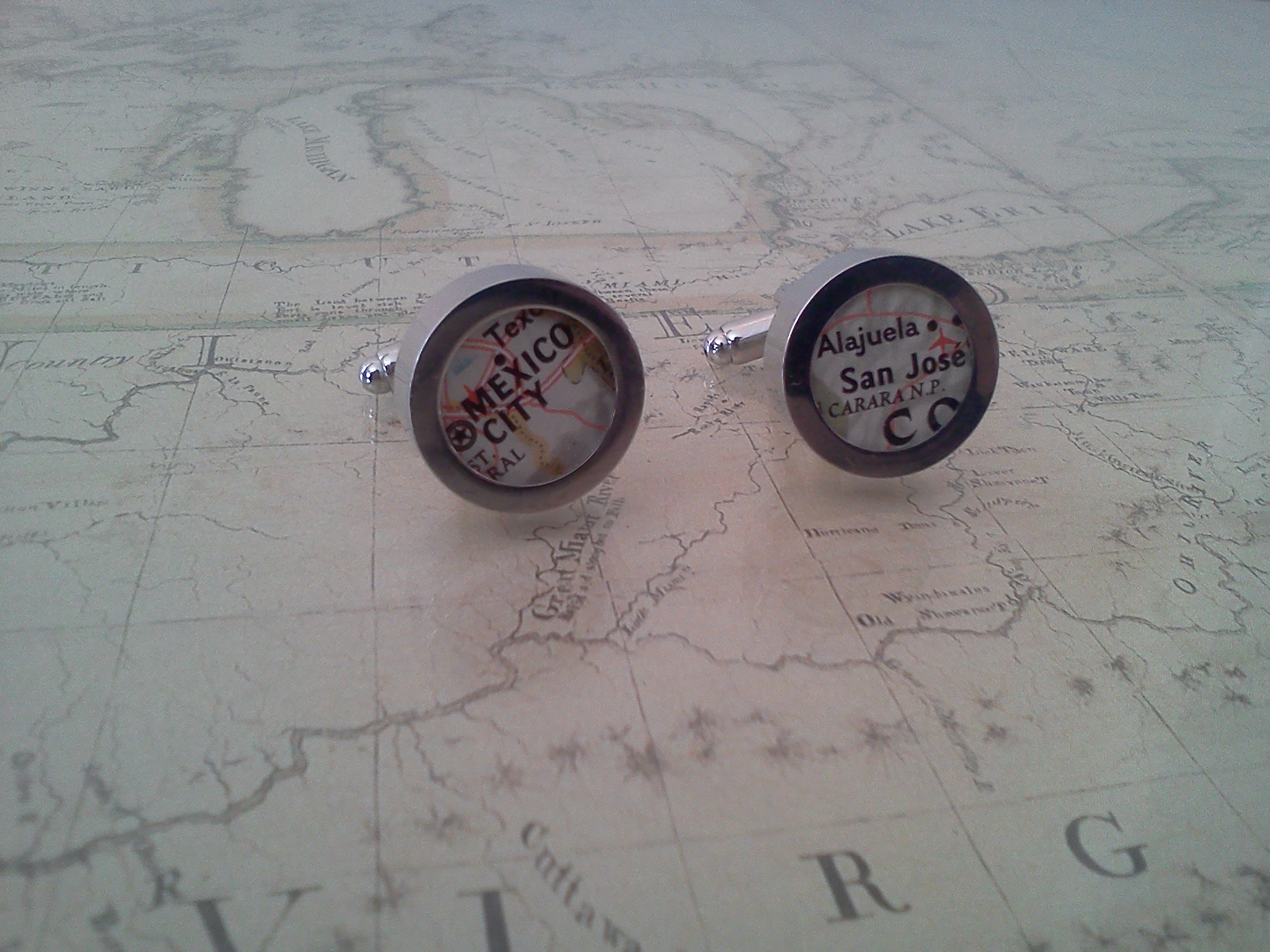 My wife and I met each other in geography classes at Brigham Young University and our identity as geographers has some carry over in our gifts for each other. This last year for our anniversary she made these cuff links from a National Geographic map of Mexico and Central America centered on two places near and dear to my heart.