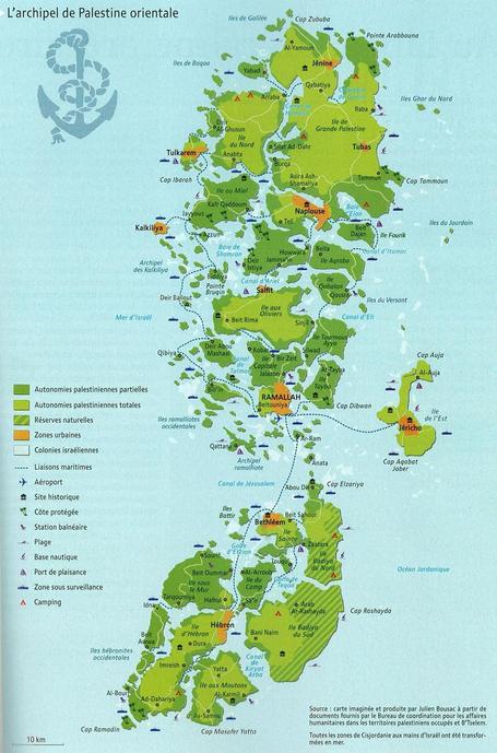 The map below show that the shape of a state can greatly impact the political cohesion of a country as well as it’s economic viability. While this is obviously a fictitious map, it draws our attention to the logistic difficulties that confront Palestine with the Israelis controlling crucial transportation access points and corridors.
