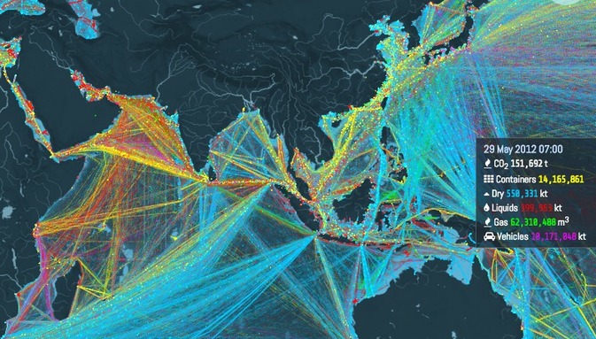 These 5 maps in this article are a sneak peek preview from the new book Connectography by Parag Khanna. These maps all highlight interactions across political borders which is Khanna’s big thesis. For example, the map above emphasizes political, economic, and environmental linkages of NAFTA and minimizes the national divisions.