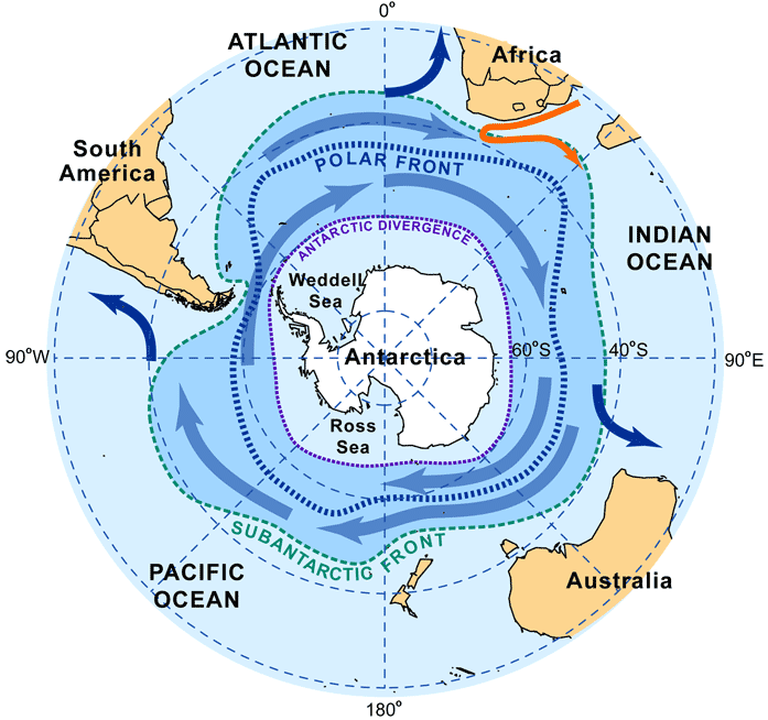 Typically we define oceans and seas based on their borders with land as their most important characteristics. Also, we rarely look at the bottom of the globe as the center of our global perspective. Those are a few of the reasons why American students usually have never heard of the Southern Ocean, but Australian students see it as one of the world’s main oceans.
