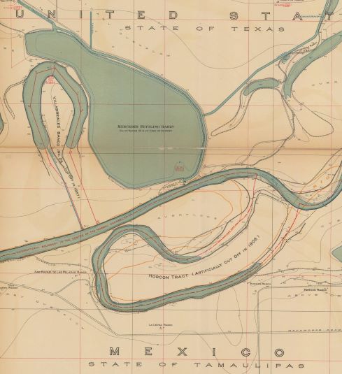The border changes as the river changes, with a big exception. The exception being when the river flow is unilaterally altered…and that is exactly what happened with Rio Rico. This great historical map shows the meanders and the Horcon tract (419 acres) that was artifically cut off from the United States by a U.S. irrigration that never told the residents of reposted the old markers for the border. This lead to fascinating little history as told in the video above.