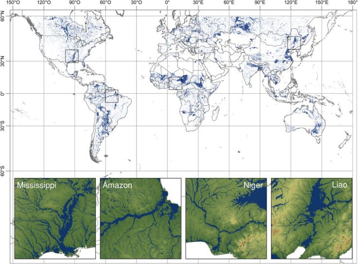 Satellites see the world as a bunch of pixels. In this recent article in the journal Nature, the authors used a global set of satellite images to create the first global layer of floodplains. This data is now publicly accessible as a free download (one you can put into ArcGIS after the files are extracted and zipped).