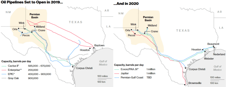 "An infestation of dots, thousands of them, represent oil wells in the Permian basin of West Texas and a slice of New Mexico. In less than a decade, U.S. companies have drilled 114,000. Many of them would turn a profit even with crude prices as low as $30 a barrel. OPEC’s bad dream only deepens next year, when Permian producers expect to iron out distribution snags that will add three pipelines and as much as 2 million barrels of oil a day."