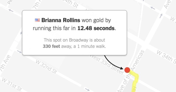 “What would Olympic races look like if they took place near you? Enter your address below to find out, or keep clicking the green button to explore races that begin in where you live.”